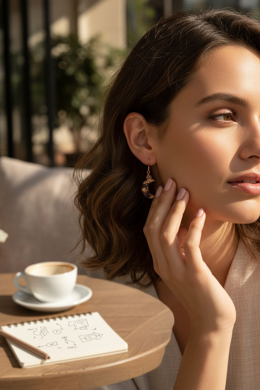 Diese zarten Halbmond-Ohrhänger verbinden leuchtende Edelsteine mit der Magie des Mondes – für Frauen, die nicht nur Schmuck tragen, sondern Energie, Ausdruck und Intuition.