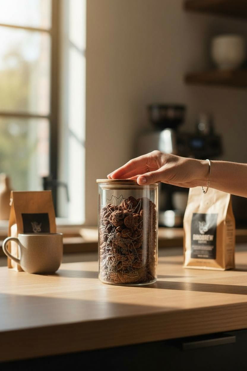 Der dicht schließende Bambusdeckel bewahrt Aroma und Knusprigkeit und macht das Glas gleichzeitig zu einem nachhaltigen Alltagshelden.