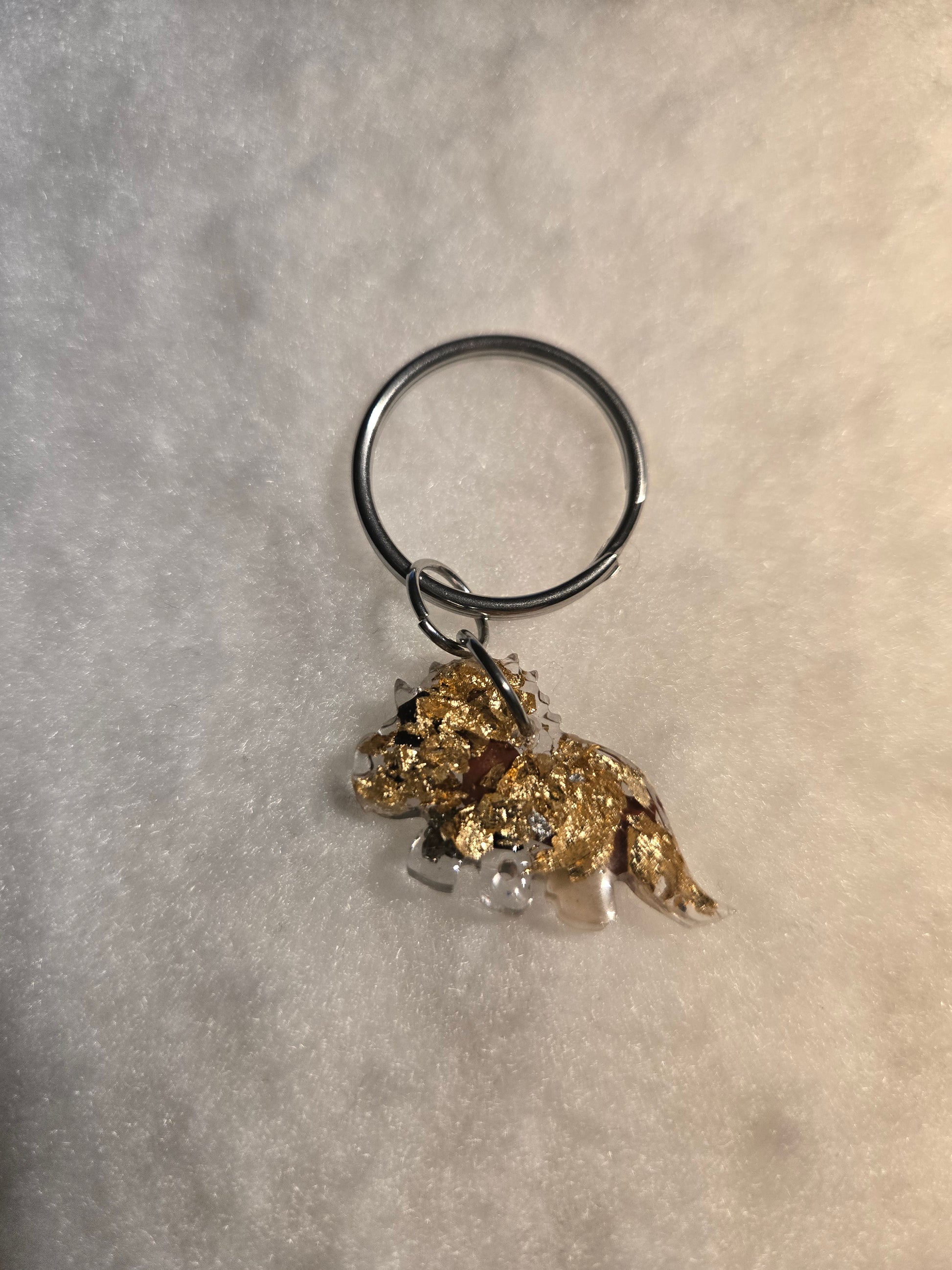 Triceratops Schlüsselanhänger (2x3cm) aus Epoxidharz – mit Halbedelsteinen