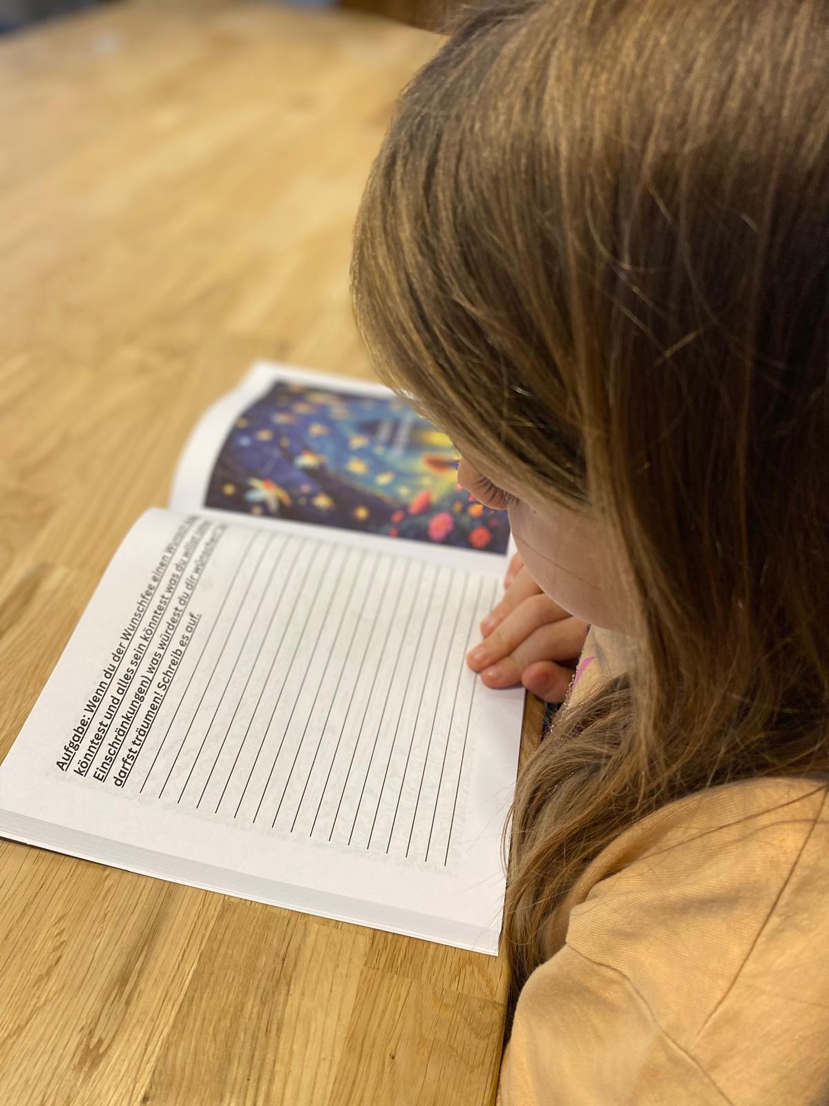 Eine feine Lichterkette (betrieben mit 2xAA Batterien), ein von Hand graviertes kleines oder großes Glas mit deinem Wunschmotiv oder Namen, beschriftbare Kärtchen und eine liebevolle Anleitung machen dieses Ritual zu einem Moment des Ankommens bei dir selbst. Dazu passend kommt ein Buch mit einer Geschichte über ein junges Leprechaun Mädchen auf ihrer Reise zum Glück, es beinhaltet Reflexionsfragen und viele Seiten zum Ausmalen und gestalten um dich mit deinem Kind zu verbinden, als kleines gemeinsames Abendritual.