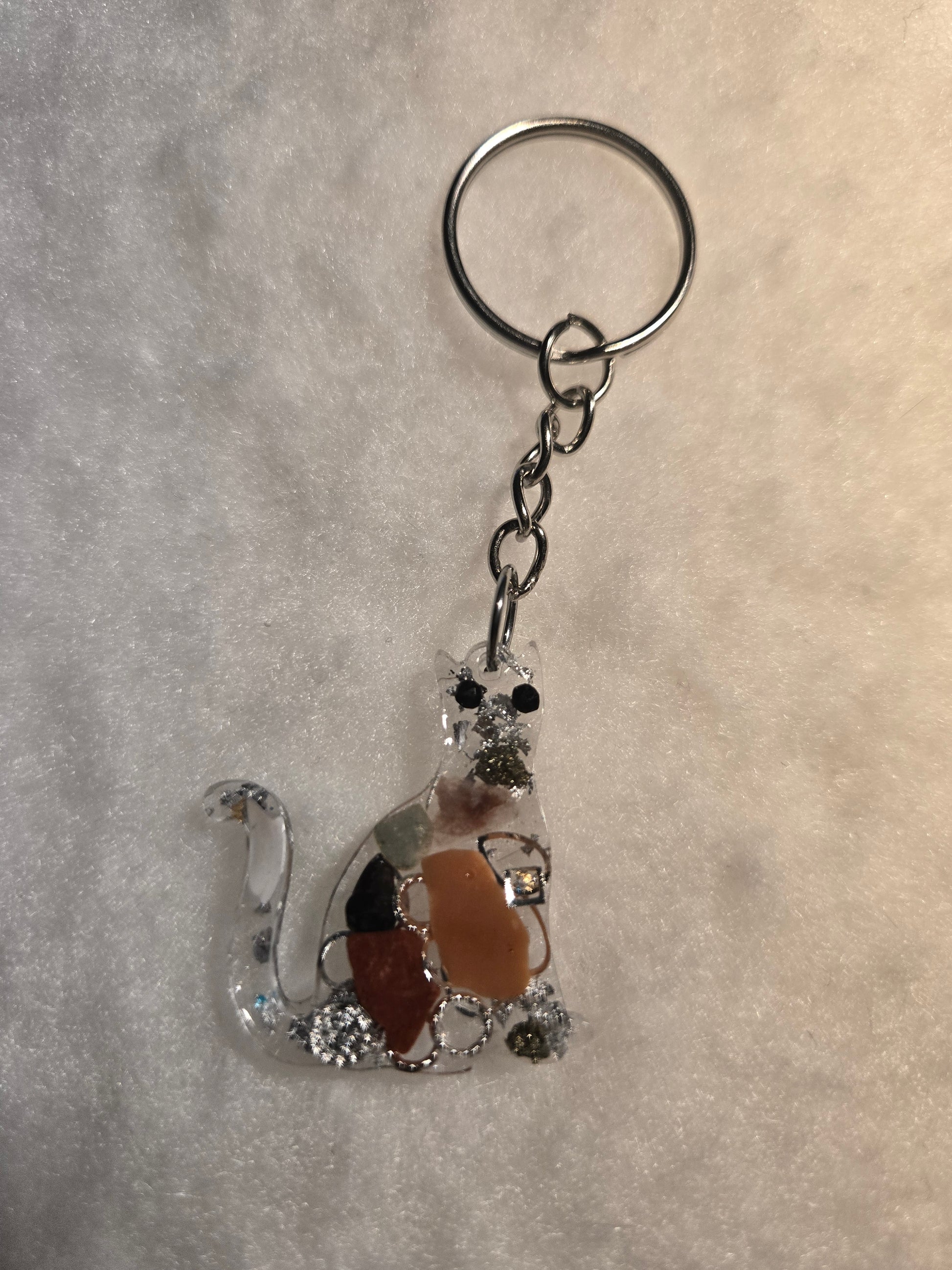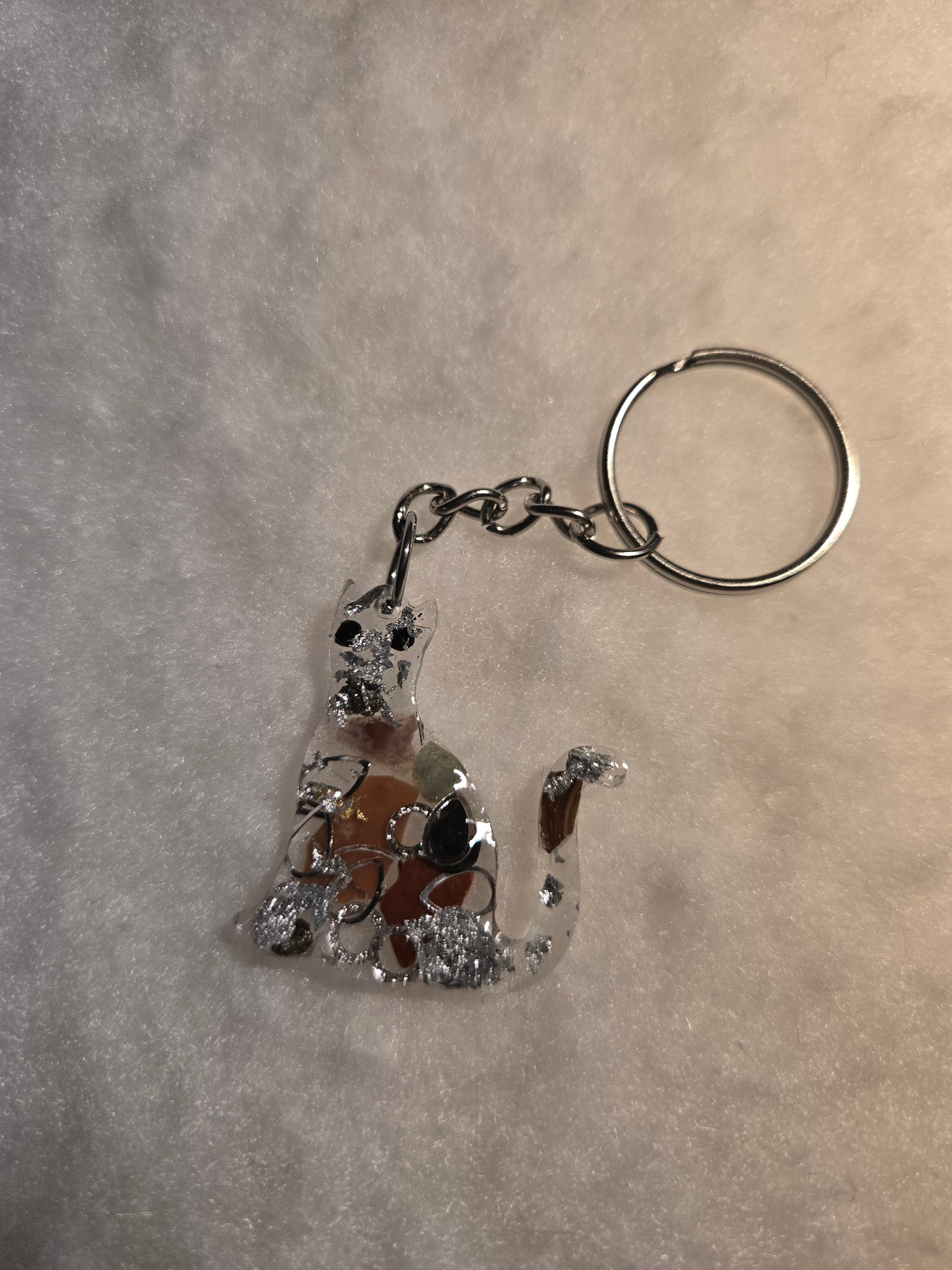 Schlüsselanhänger – sitzende Katze aus Epoxidharz